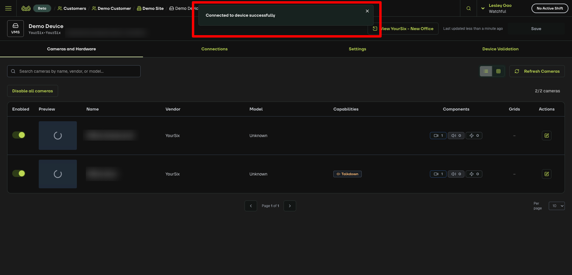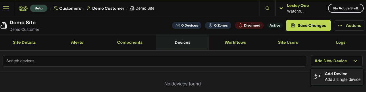 Once set up, Watchful can see all sites and cameras that the VMS allows.
